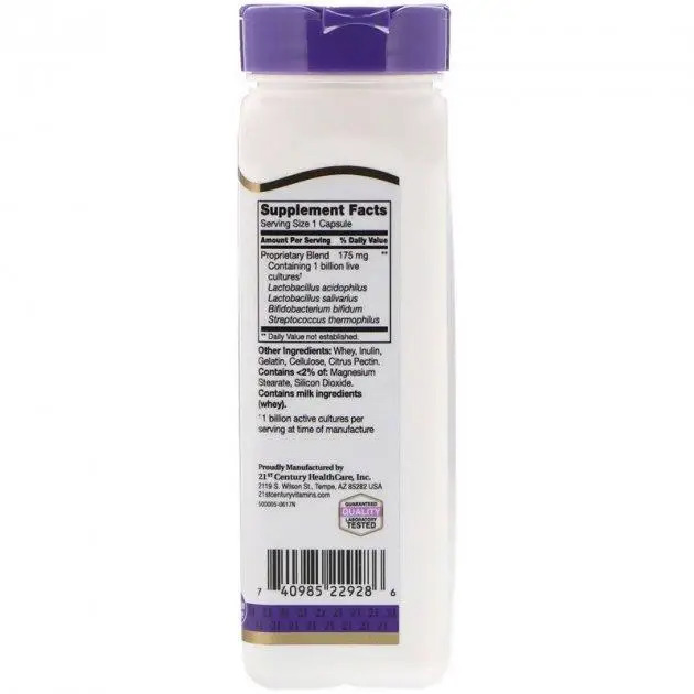 Запатентованная смесь, специально разработанная для поддержки полезной кишечной флоры Биологически активная добавка Не содержит глютена Продукт прошел лабораторные исследования и имеет гарантированное качество Запатентованная смесь наиболее полезного известного штамма Lactobacillus acidophilus, синергически объединенная с тремя другими генетически различными пробиотическими организмами и пребиотическим инулином, предназначенная для поддержания пробиотической активности в кишечнике.