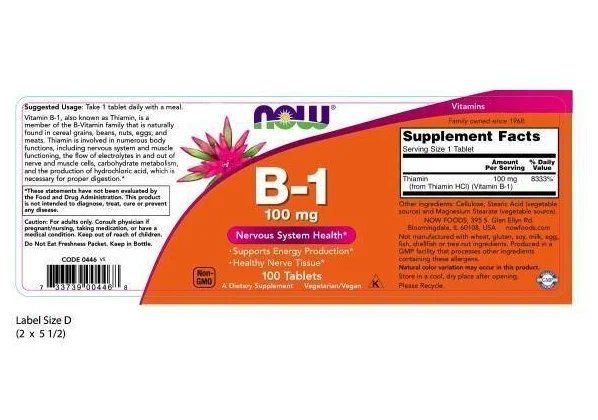 Now Vitamin B-1 100 mg – 100 Tablets
